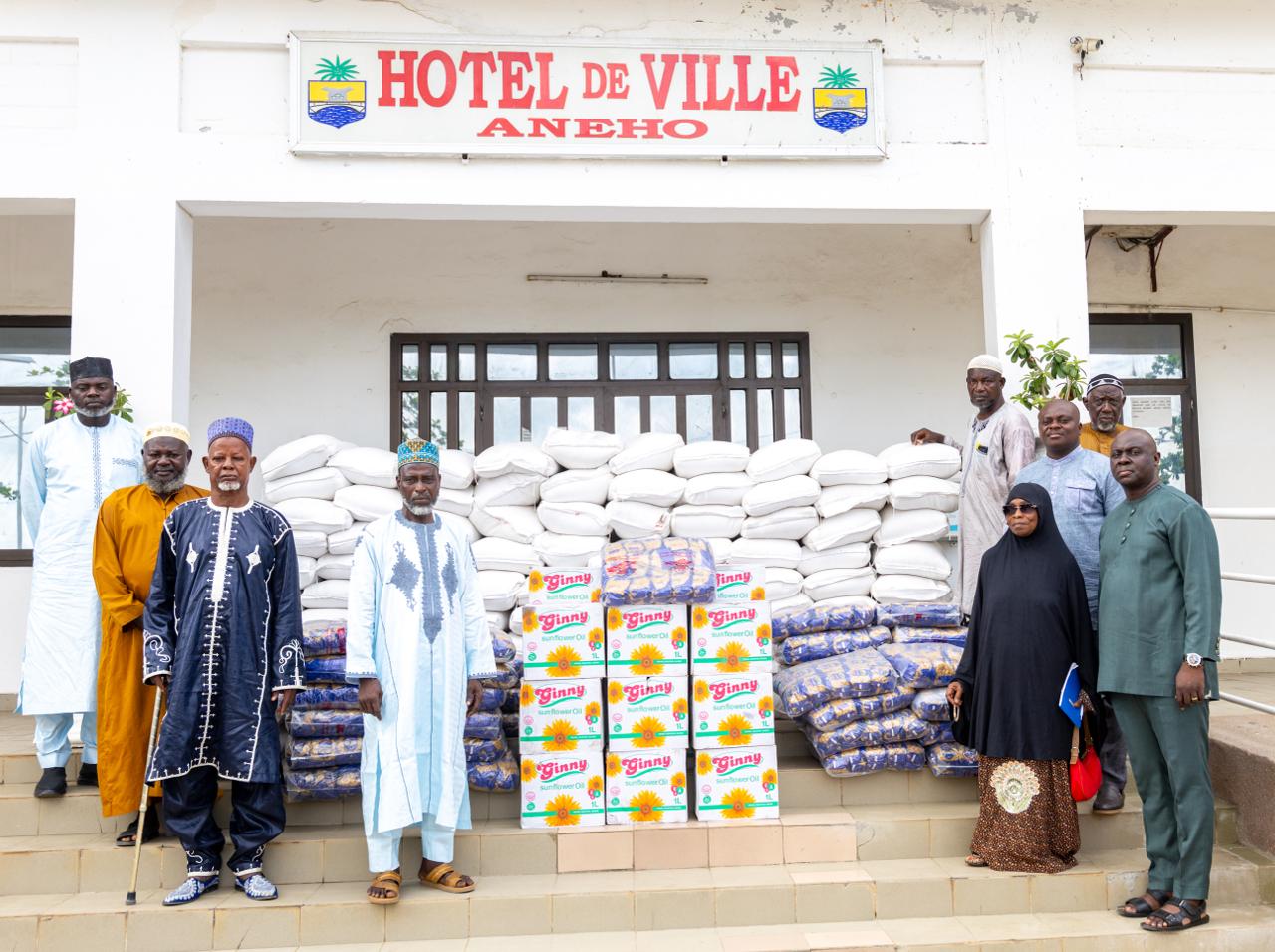 Dans une atmosphère conviviale, les responsables de la communauté musulmane ont bénéficié d’un important don de vivres, traduisant une attention particulière à leur endroit. Cette action s’inscrit dans une démarche plus large de solidarité, étendue aux personnes vulnérables de la localité, avec plus de 3 000 bénéficiaires directs.
