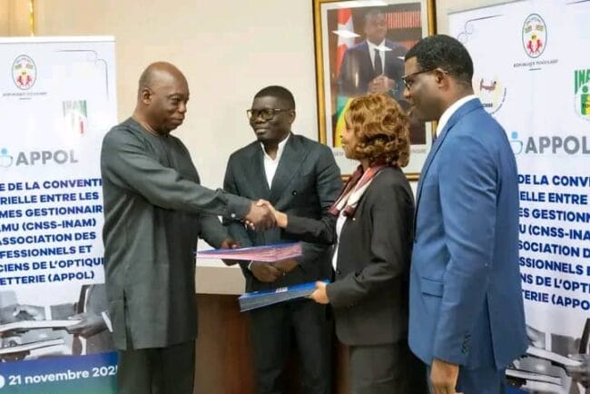 Le Togo franchit une nouvelle étape dans la mise en œuvre de l’Assurance Maladie Universelle (AMU) avec la signature d’une convention sectorielle entre la Caisse Nationale de Sécurité Sociale (CNSS), l’Institut National d’Assurance Maladie (INAM) et l’Association des Professionnels de l’Optique-Lunetterie (APPOL).