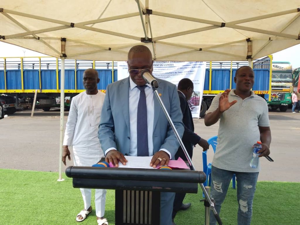 La cérémonie de remise des clés s’est déroulée en présence du Directeur général de la Direction des transports routiers du Togo, Dermane Tadjudini, représentant le ministre des Transports, et du président de l’UNATROT, Fambo Komi Séna.